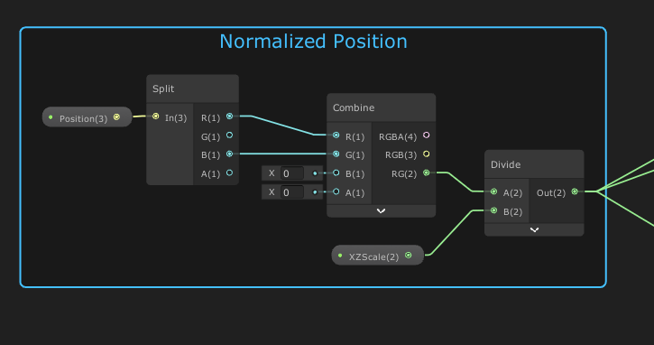 For the shader graph, I can’t actually use UV’s. If you remember my vertex normal calculation logic, it requires all results to be driven by position only. So I take the input x & z, divide by the dimensions of my paper (9 and 11), and treat that like UVs.